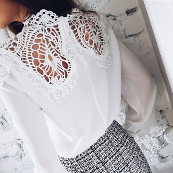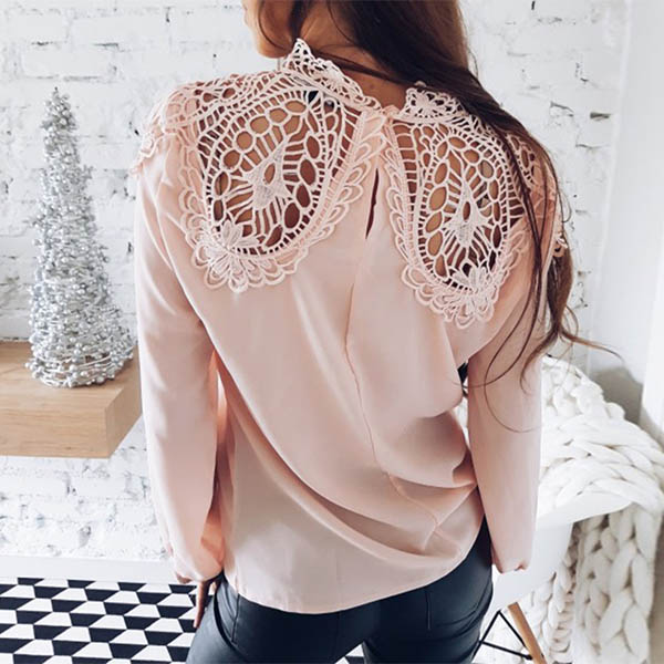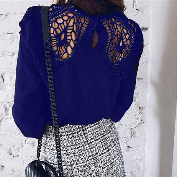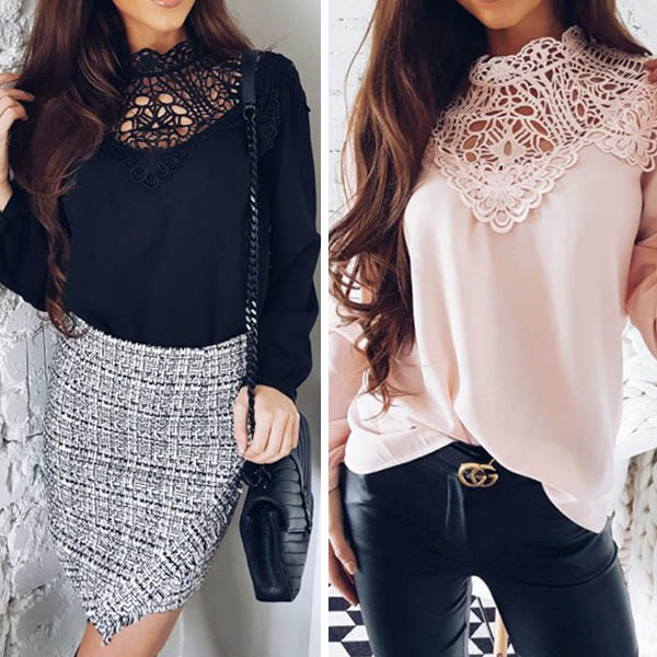 A perfect combination of lace and chiffon element,this wonderful blouse is sure to give you a cozy yet