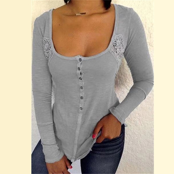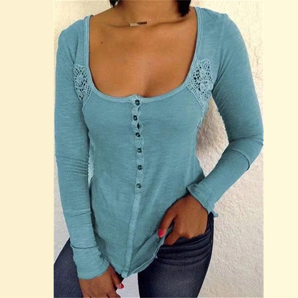 Solid color style,finished with long sleeve and U-neck design,the lace spliced and front buttons