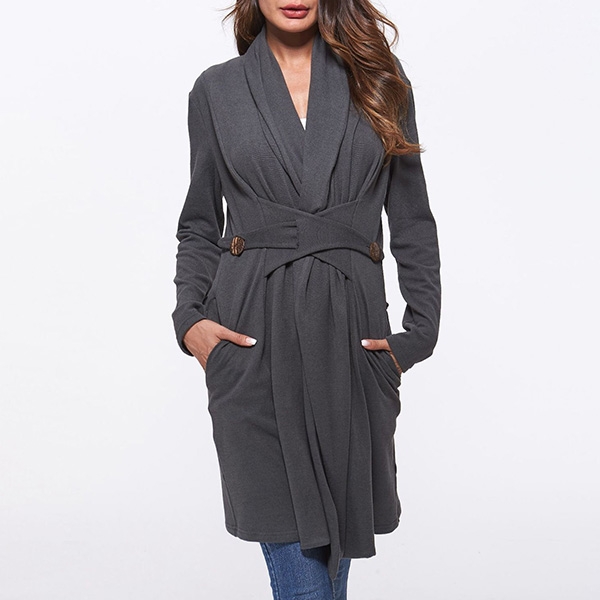 As a perfect layer to keep you warm as well as maintain your style,this cardigan can hardly go wrong! Boasts a solid color,the soft and comfortable fabric can offer you a long-lasting comfort. The most attractive design of this piece is the lace-up design at the waist part. It can offer you different matching styles.