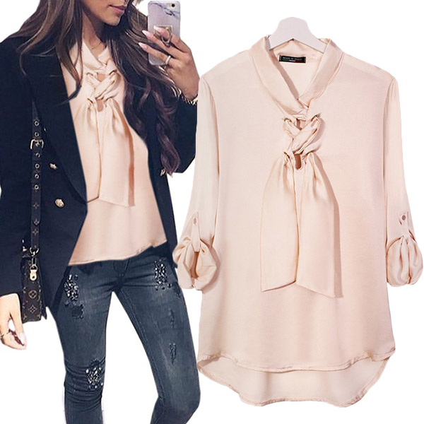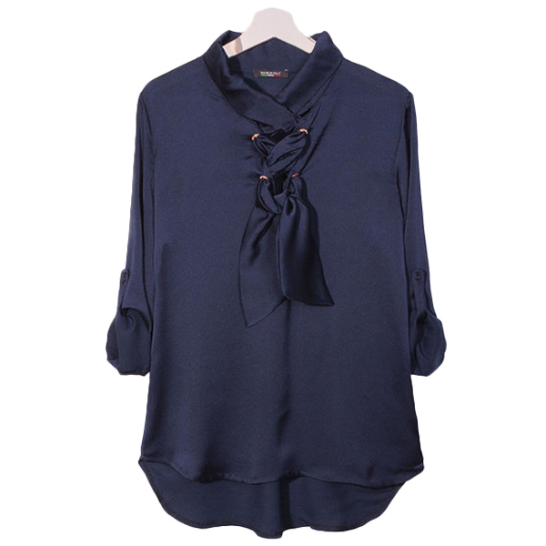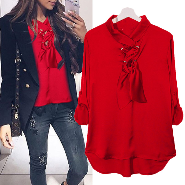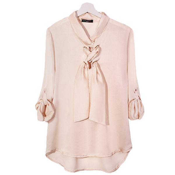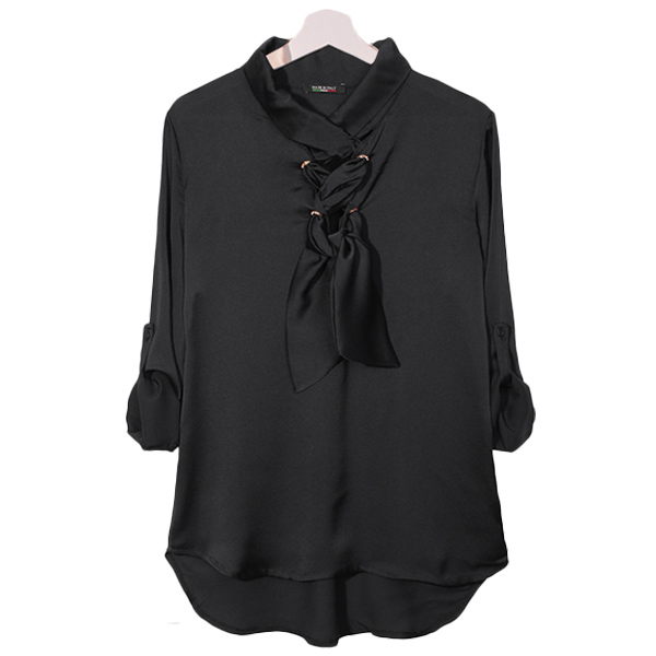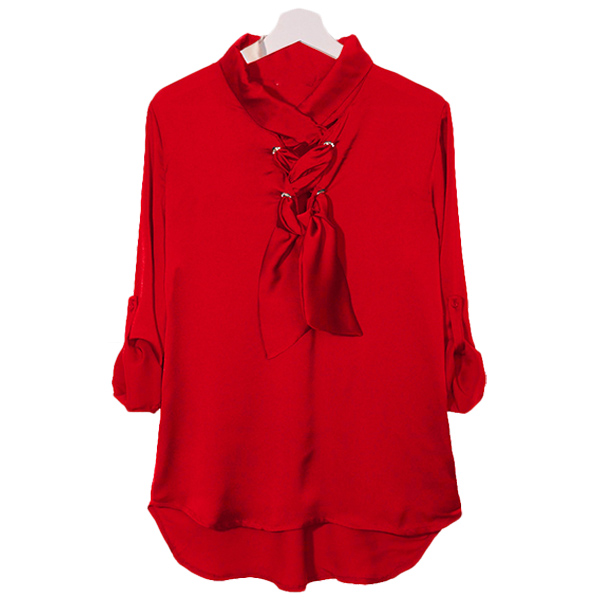 For these office ladies,this chiffon blouse would be a good choice. Solid color style,the lace-up design