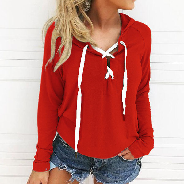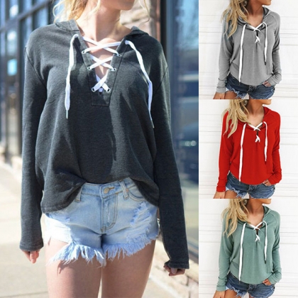 Designed with a solid color style,the long sleeve,hooded loose silhouette and lace-up design will give you a very comfortable