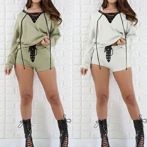 Achieve for a chic and stylish style with this two-piece set. Solid color style,including a long sleeve v-neck sweatshirt and
