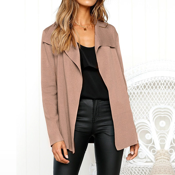 When the days get a little cold,you can slip into this cardigan. Finished with solid color,long sleeve and lapel