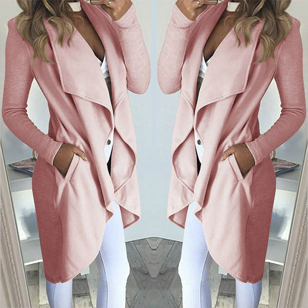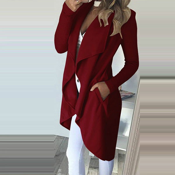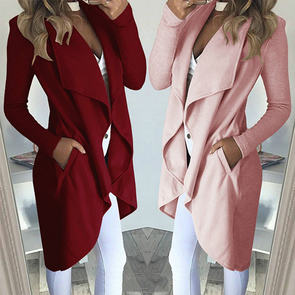 on hand. Solid color style,tailored with long sleeve,big lapel and an irregular hem,this cardigan can be