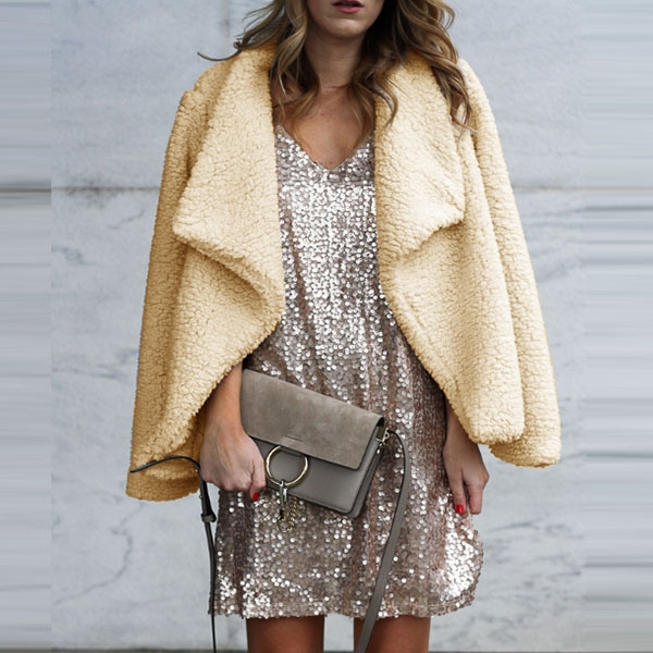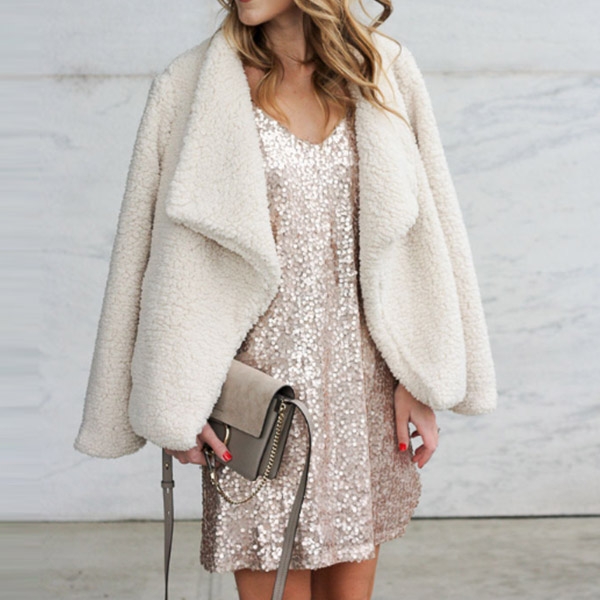 Enrich your winter wardrobe with this plush coat. It comes with a solid color,finished with long sleeve