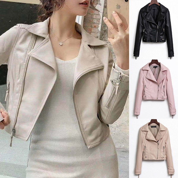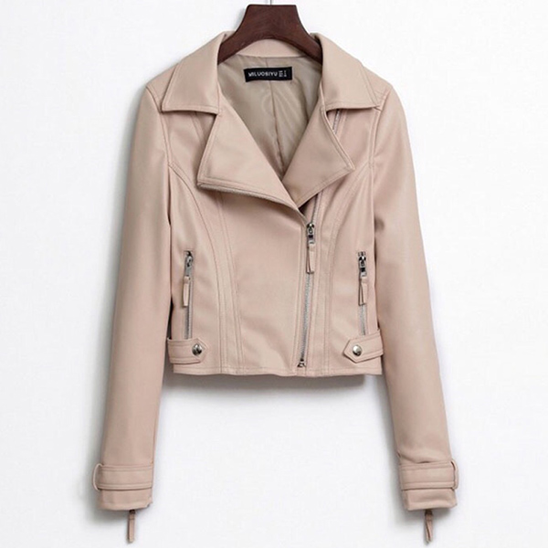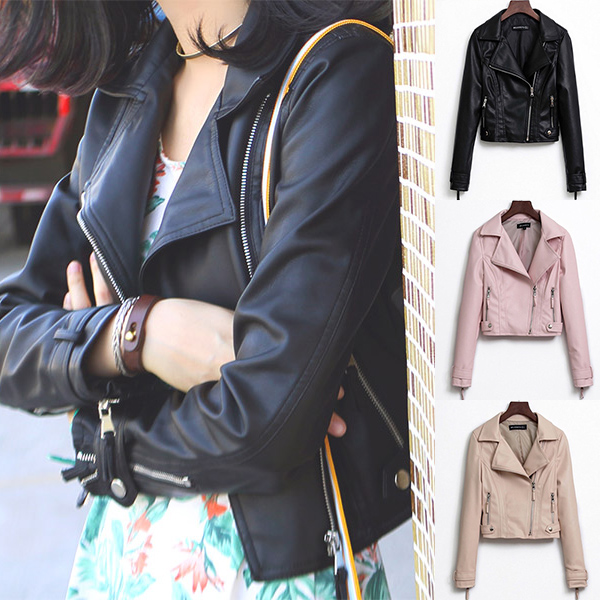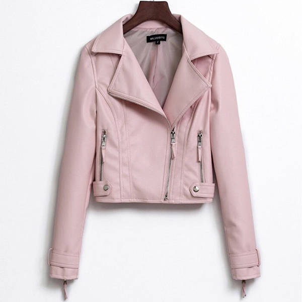 PU leather jacket is a must-have item for every girl. Look at this one,it features solid