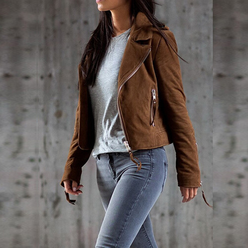 outfitted with long sleeve,lapel,zipper pockets and slim fit design,refined and delicate.