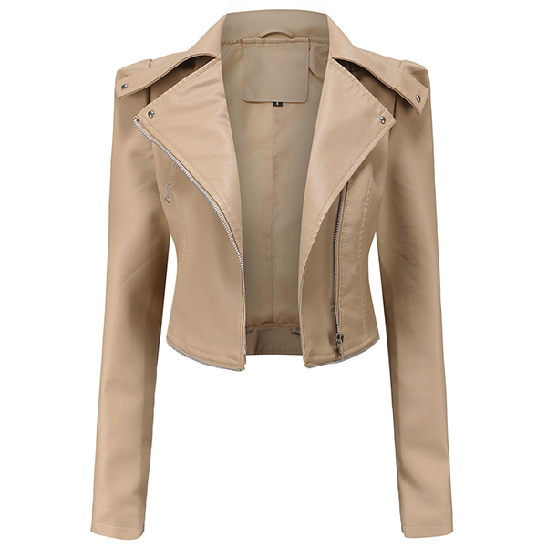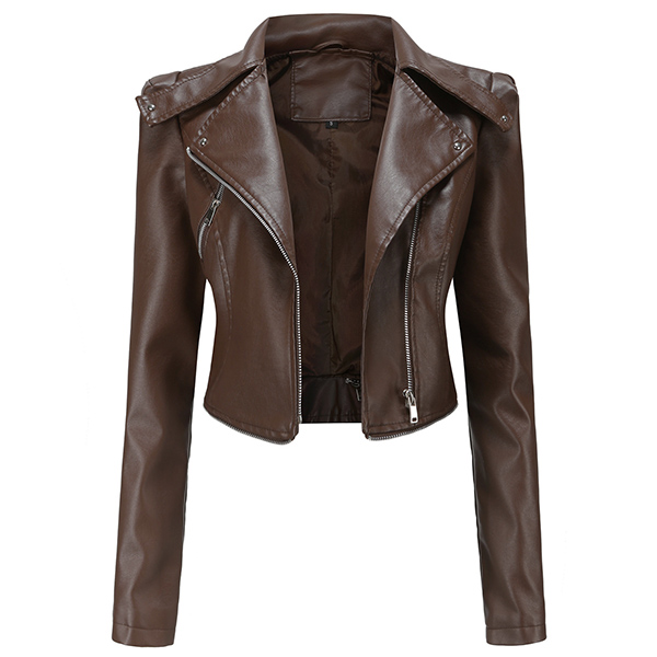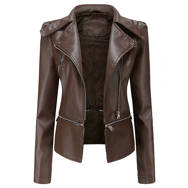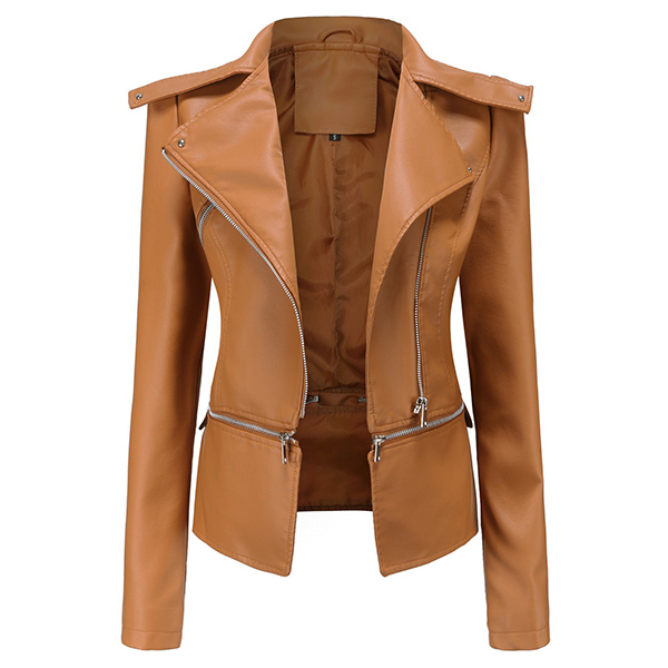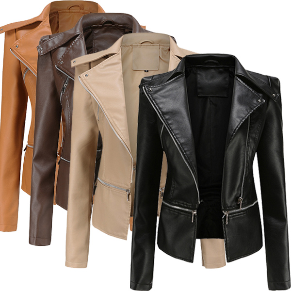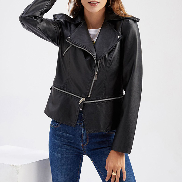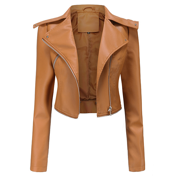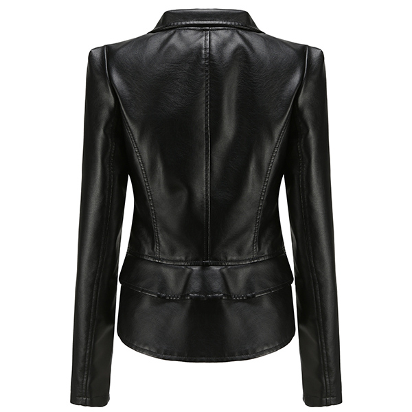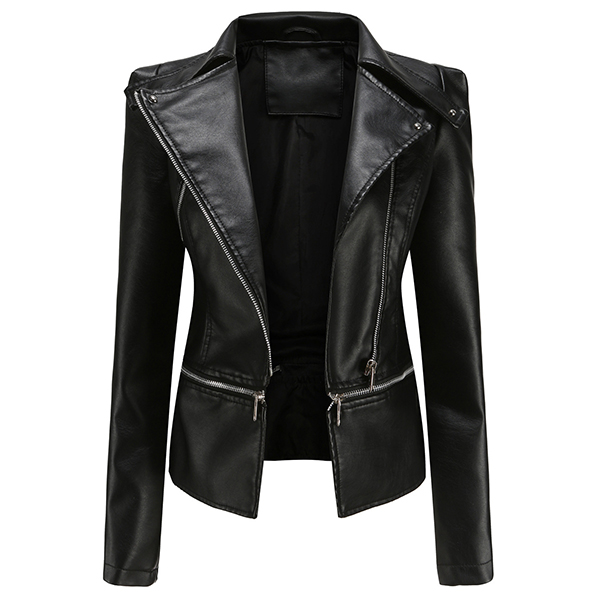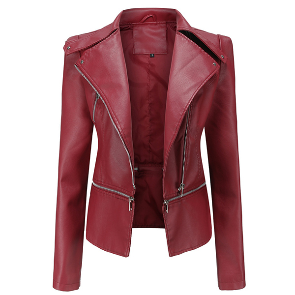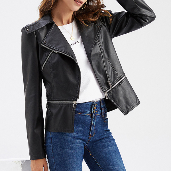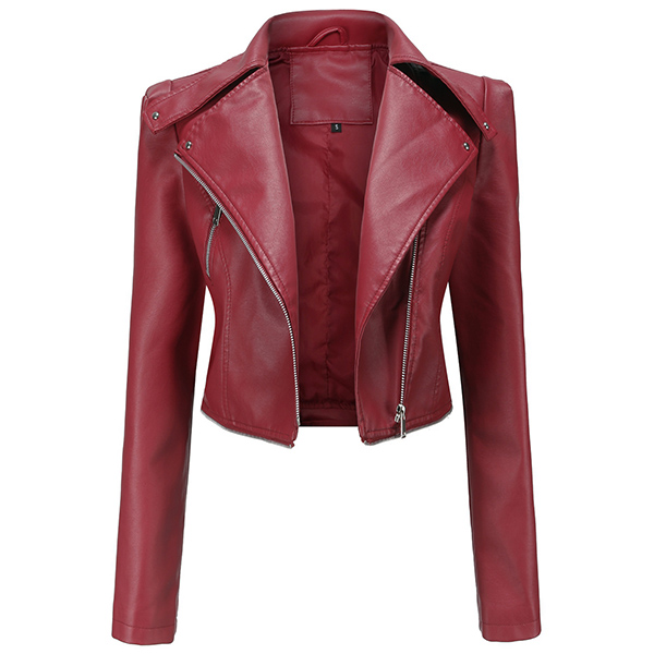 This PU leather motorcycle jacket is crafted from high quality material,durable and wearable. Solid color style,with long sleeve,lapel and zipper front. Plus,its slim fit design can perfect show off your slender figure and charming style. It is your wardrobe staple in some chilly days.