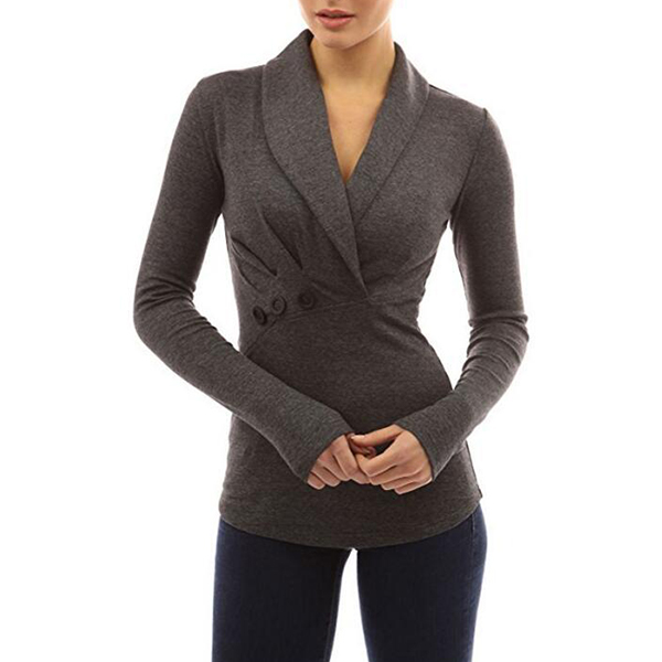 with long sleeve and lapel design,this t-shirt can keep you comfy and stylish. Decorated with button details will give you