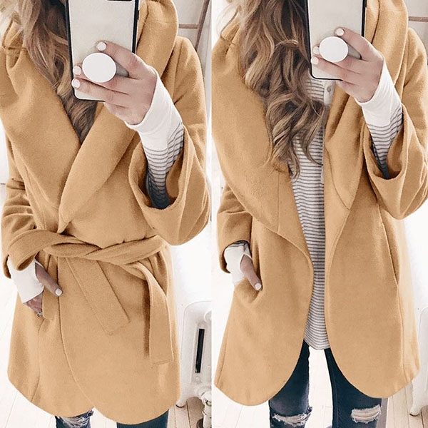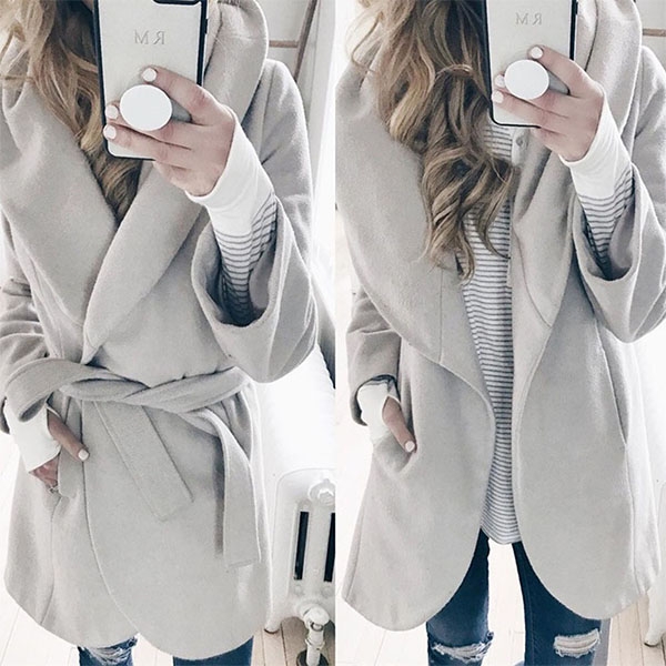 finished with long sleeve and lapel design,simple,cozy yet stylish. Moreover,the waist strap design