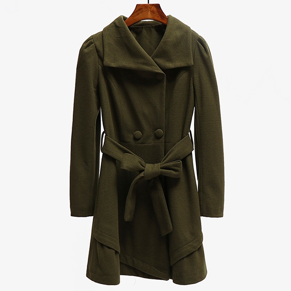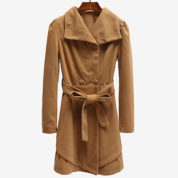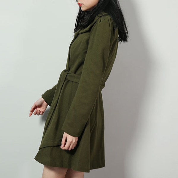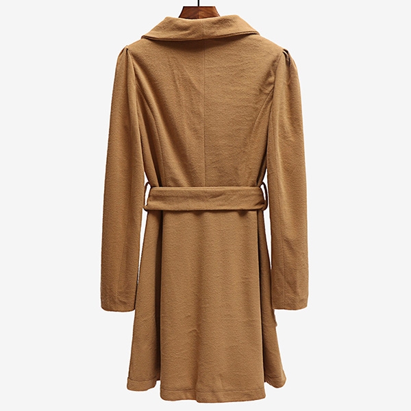 simple yet generous,and the unique lapel design will enhance its charm. Moreover,the waist strap design would