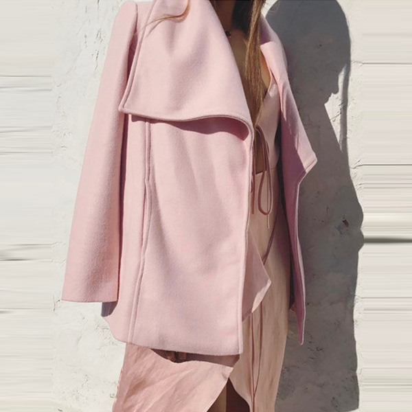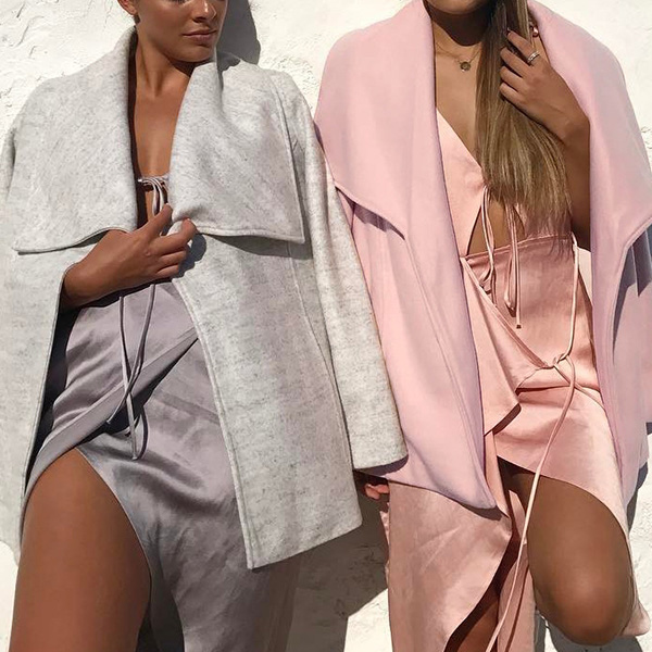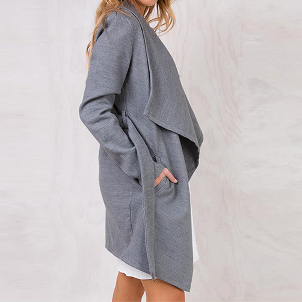 It features a solid color,finished with long sleeve and a big lapel,chic and unique. It also comes with a waist strap,