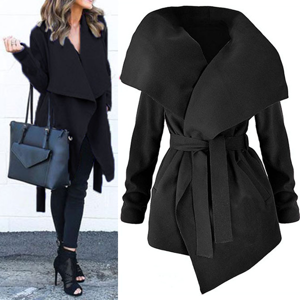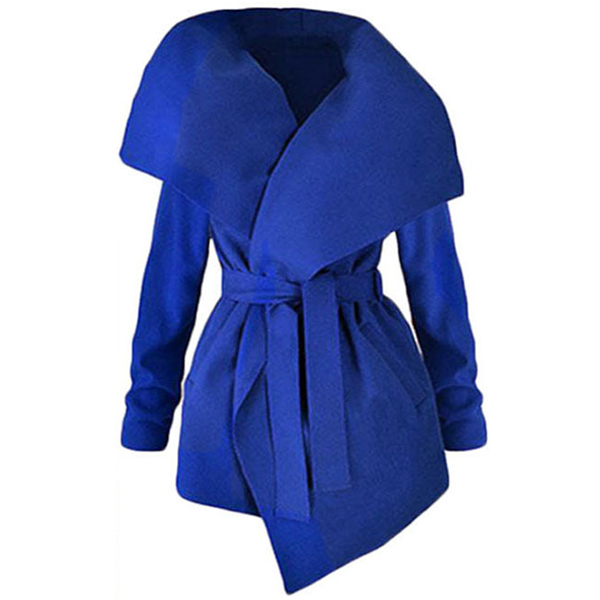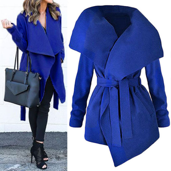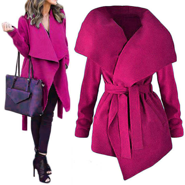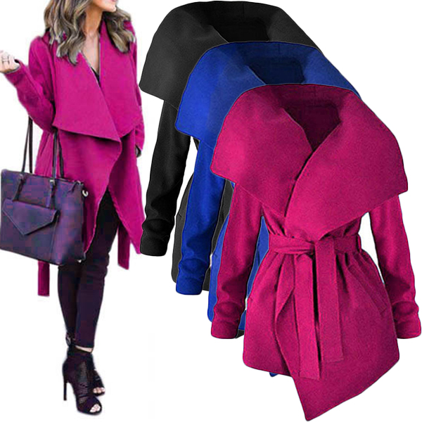 Solid color style,designed with long sleeve and a big lapel,classic and stylish. Comes with a waist strap design