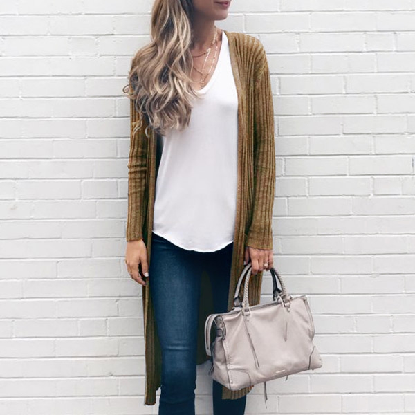This knit cardigan can give you a perfect transition from the hot summer days to the autumn days.
