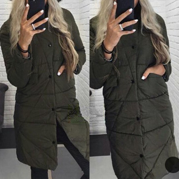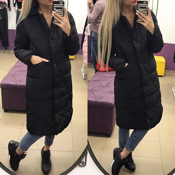 For these cold days,this long-style padded coat would be your essential. It comes with a solid color,