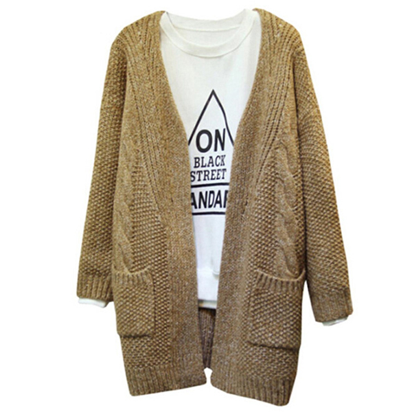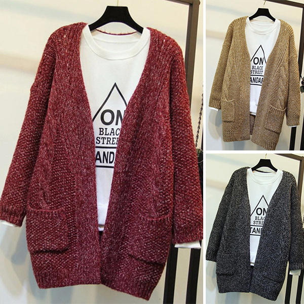 Fashion Solid Color Long Sleeve Loose Knit Cardigan