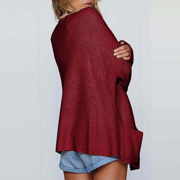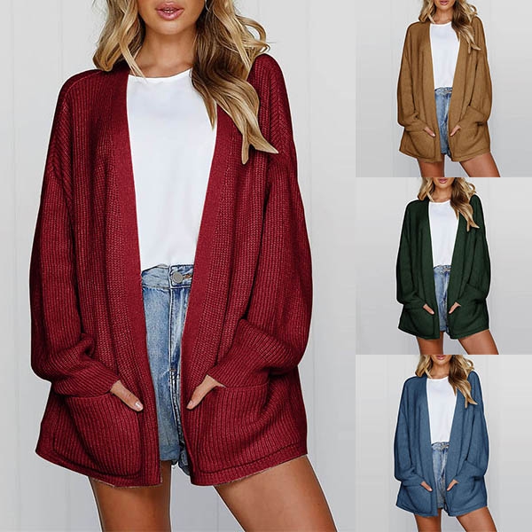 autumn? The knit cardigan is a perfect choice. It comes with a solid color,finished with long sleeve and a