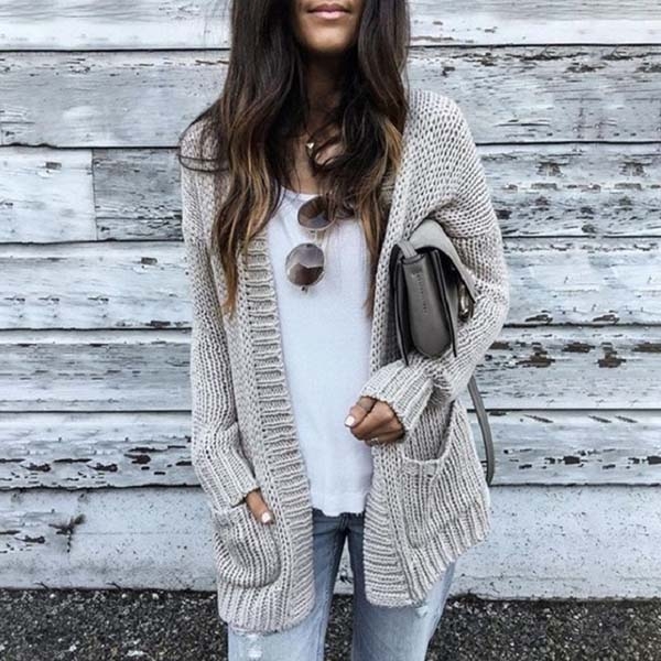 Comes with a solid color,finished with long sleeve and a loose silhouette,this wonderful cardigan