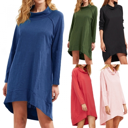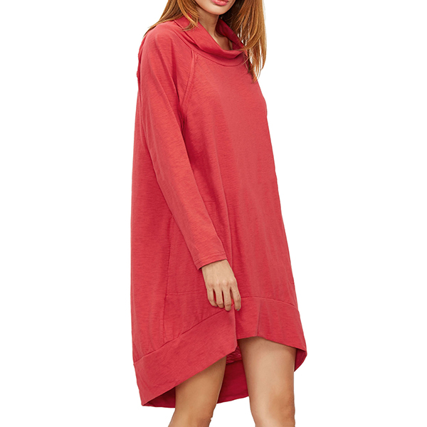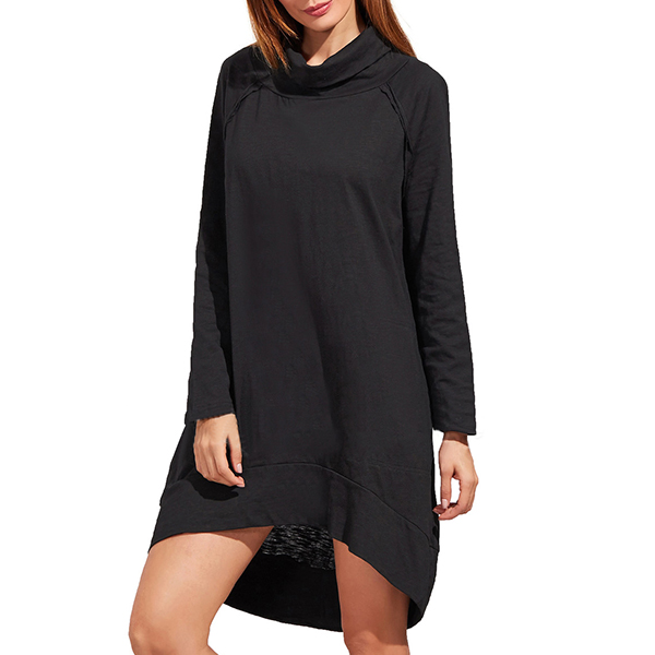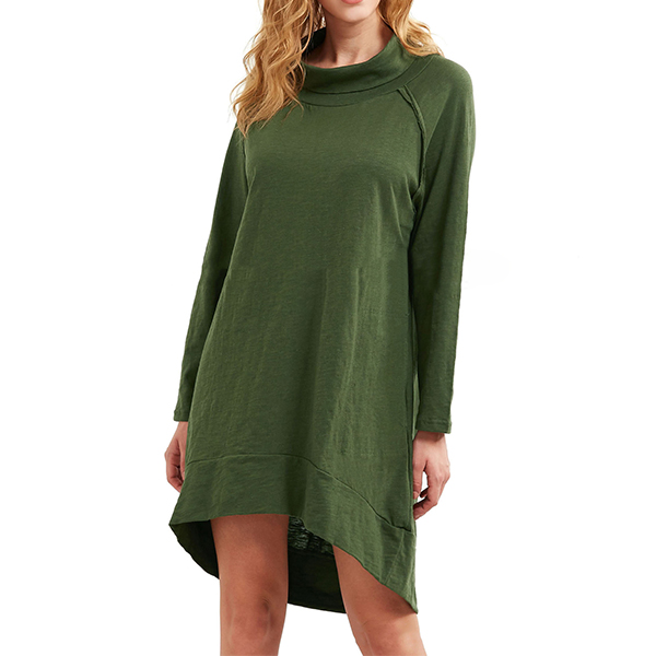 long sleeve,mock neck,a loose silhouette and a high-low hem,chic and stylish. Just need to match with your favourite