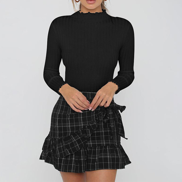 Finished with a solid color,long sleeve,mock neck and a fit silhouette,you can wear it alone in the spring