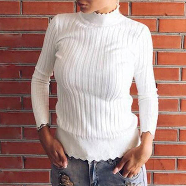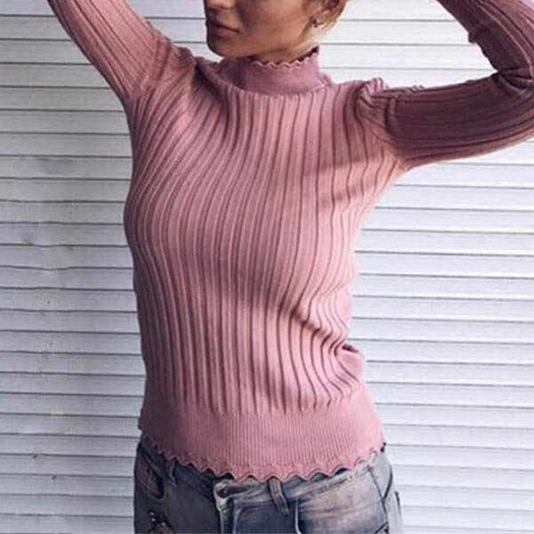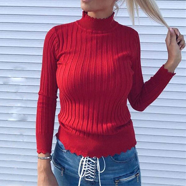When the cold season hits,you can invite this knit top to your wardrobe ensemble. It features a solid