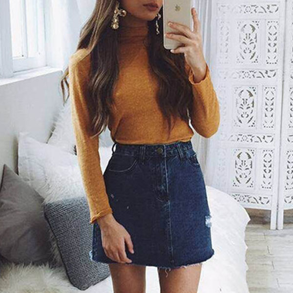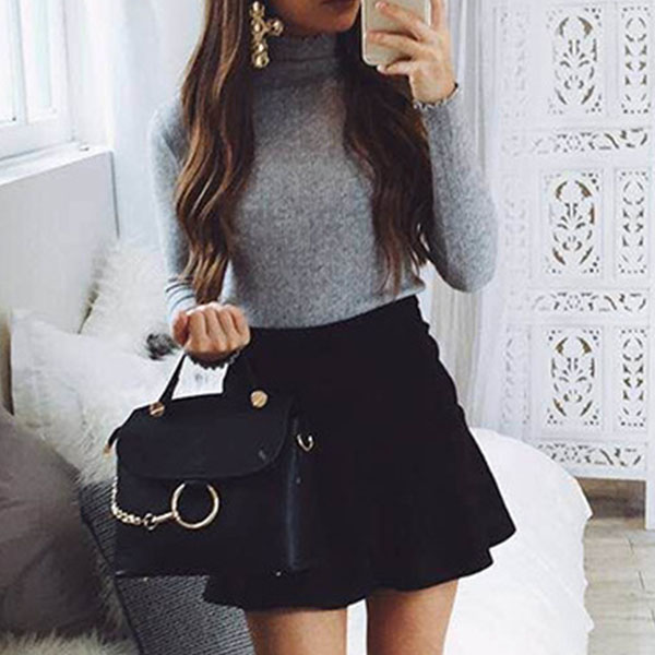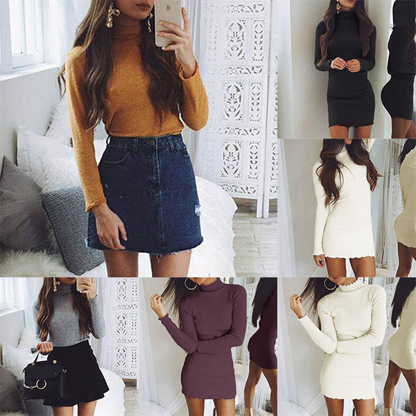 Solid color style,designed with long sleeve,mock neck and a tight silhouette,this sweater dress can keep you warm as
