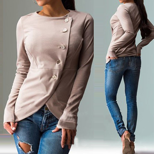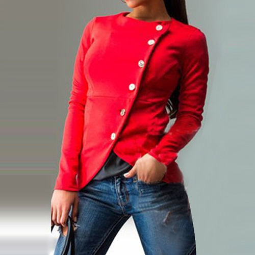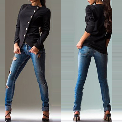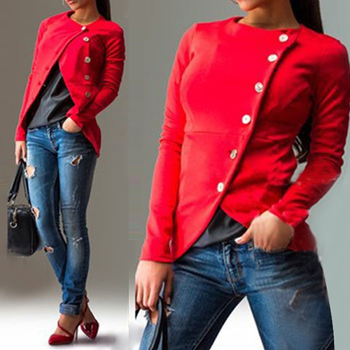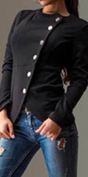 hemline design, cool and vogue. Its perfect details on the oblique buttons make this piece become