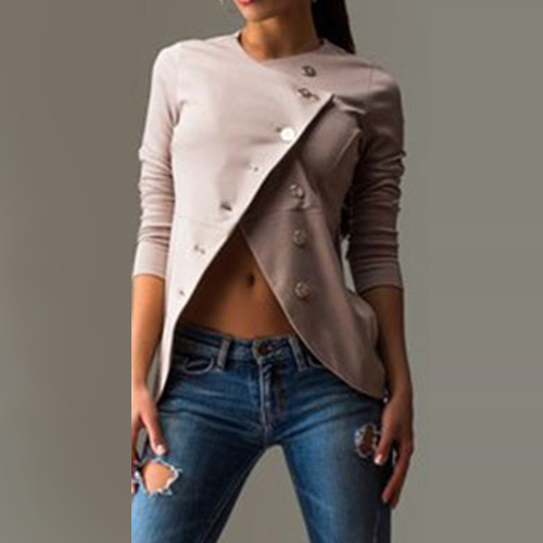 Let this little coat update your fashion wardrobe. Styled with solid color, long sleeve and irregular