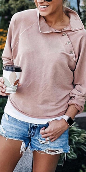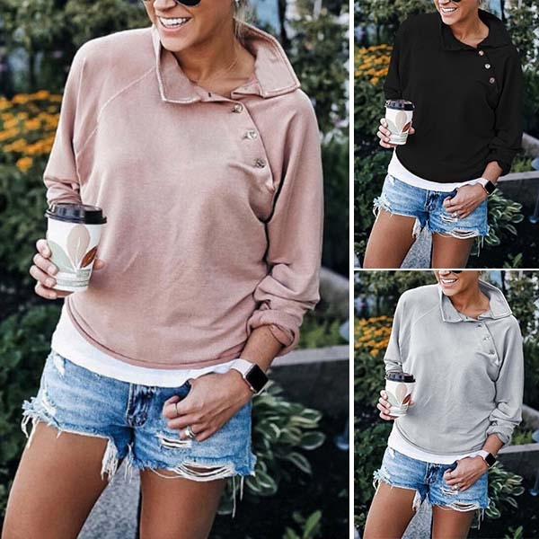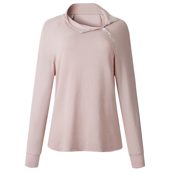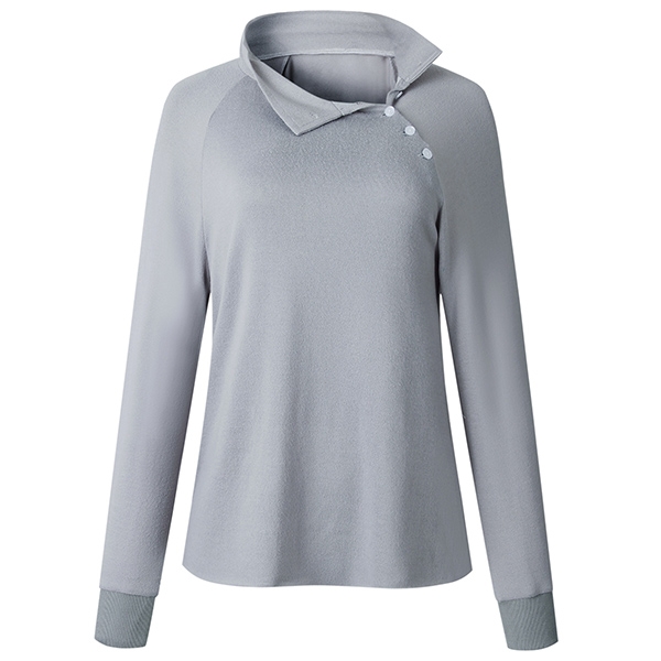 Fashion Solid Color Long Sleeve Oblique Lapel Sweatshirt