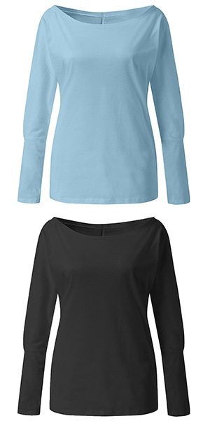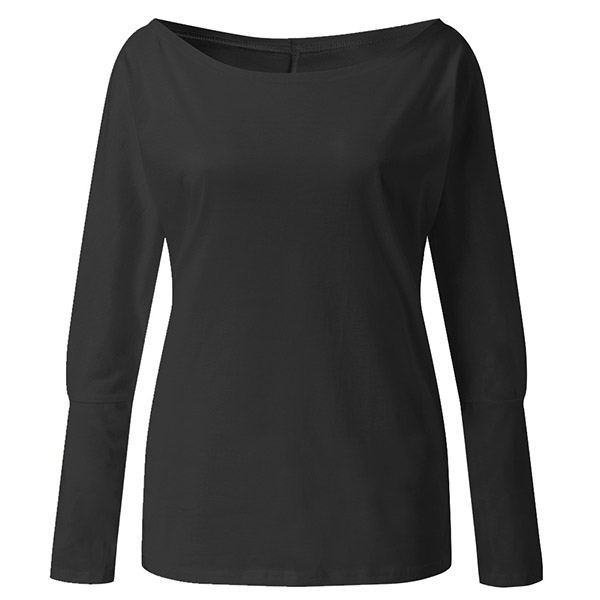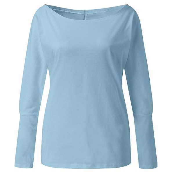 Fashion Solid Color Long Sleeve Oblique Shoulder T-shirt