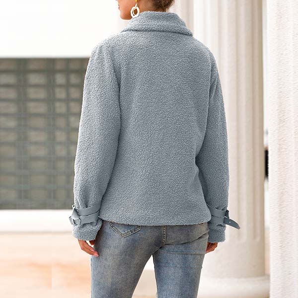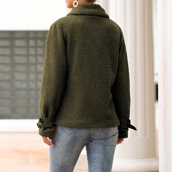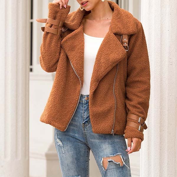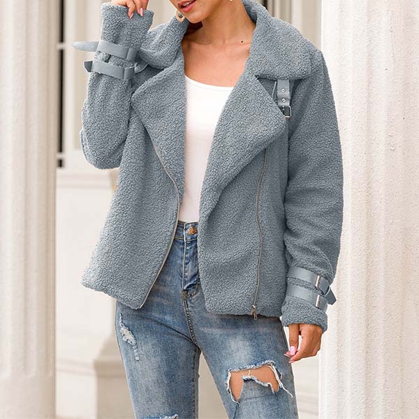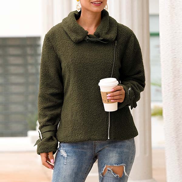 the oblique zipper design makes this piece look so chic and attractive,while its cozy plush