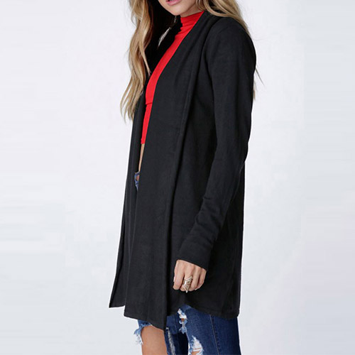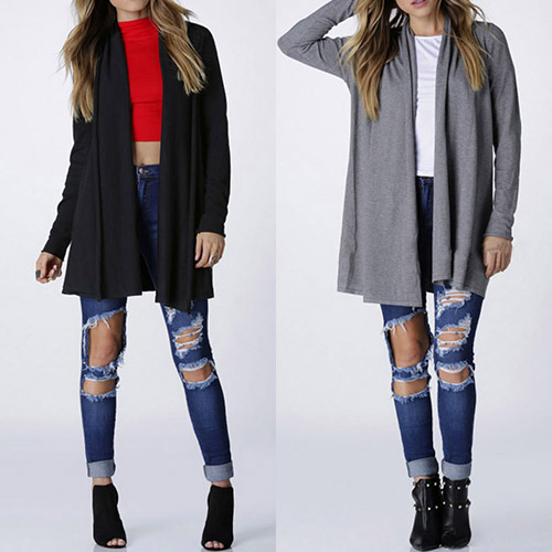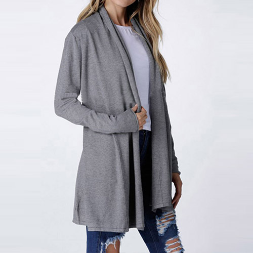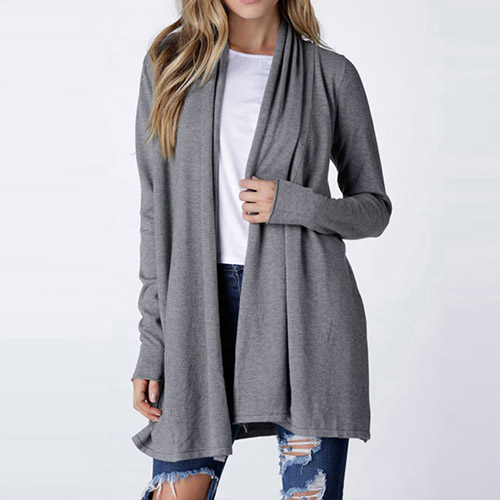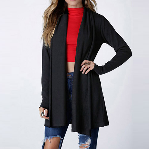 Solid color style,crafted from ribbed knit fabric,with long sleeve and an open-front,