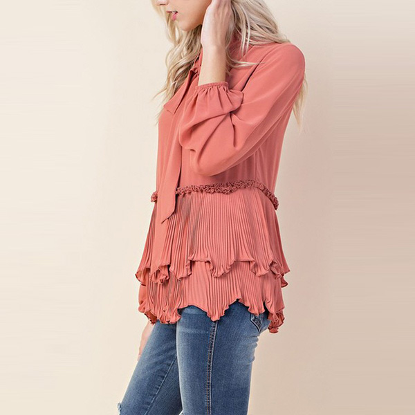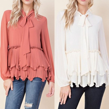 promise you a comfortable day,while the pleated hem and lace-up design around the neckline part make this