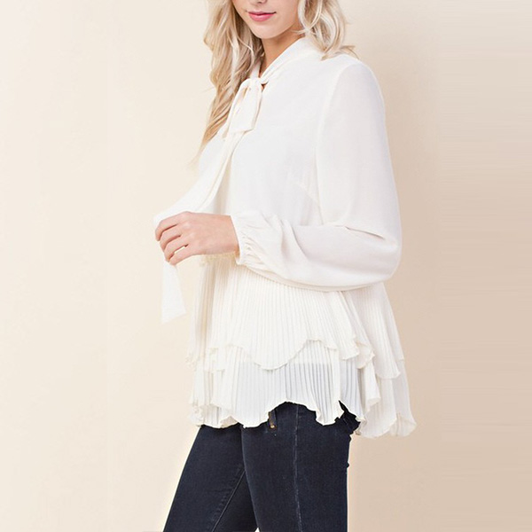 For the office ladies,this chiffon blouse would be a good choice. Solid color style,its soft and cozy fabric can