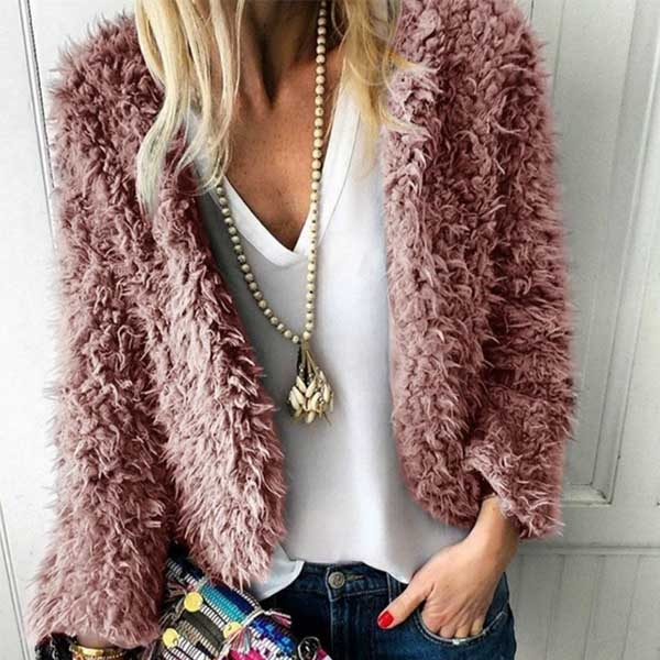 When you feel cold,you can just slip into this cardigan. Its soft plush fabric can give you a good touch