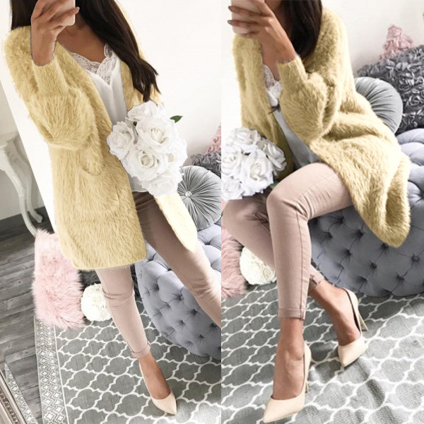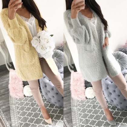 This plush coat would be your wise choice in these chilly days. Solid color style,designed with long sleeve and a clean