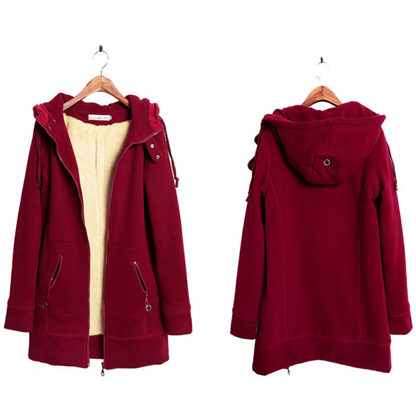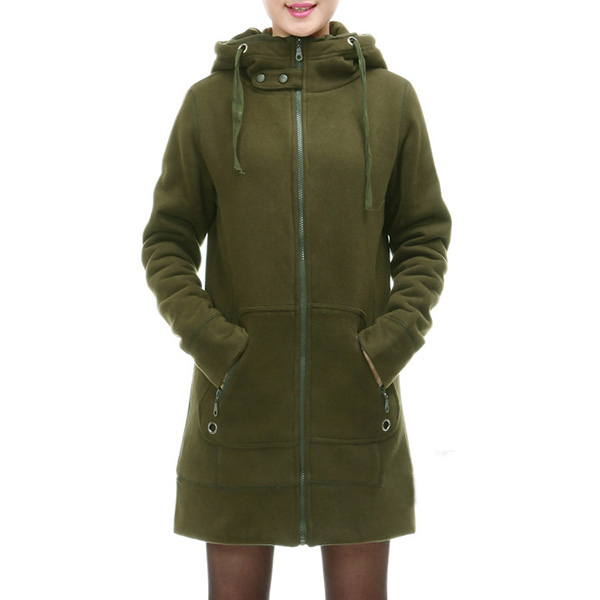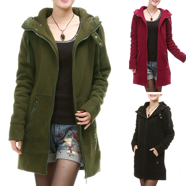 This is a very comfortable and fashionable coat. Solid color style,designed with long sleeve,zipper pockets and hooded