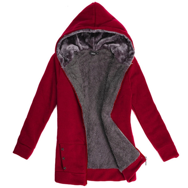 It comes with a solid color,finished with long sleeve,hooded silhouette,front zipper closure and plush lining,