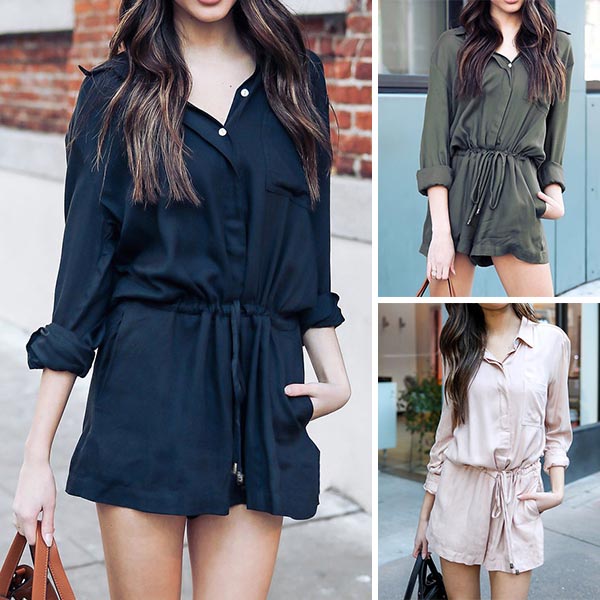 long sleeve and POLO collar,chic,cozy and stylish. Meanwhile,the drawstring waist design can help accentuate