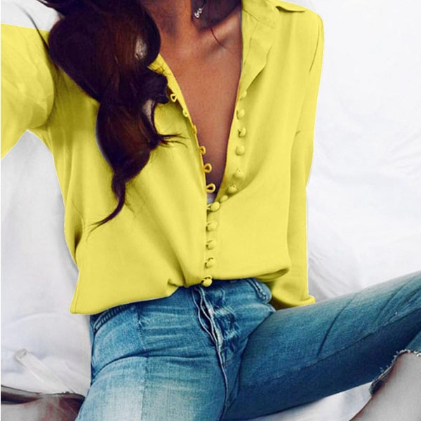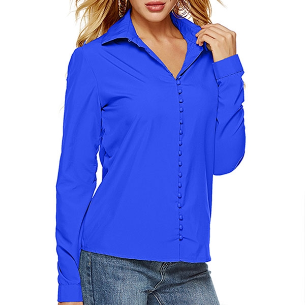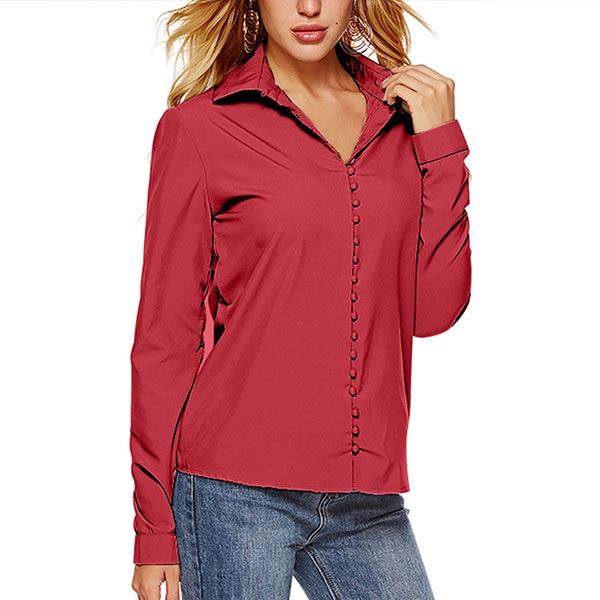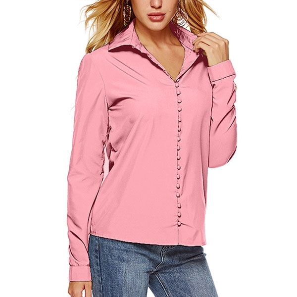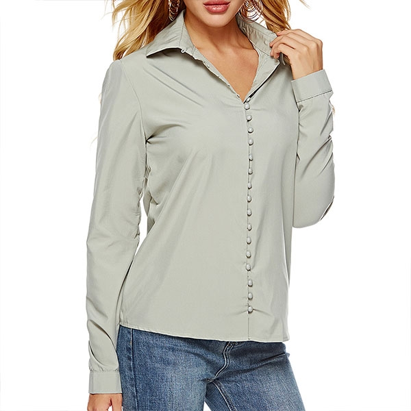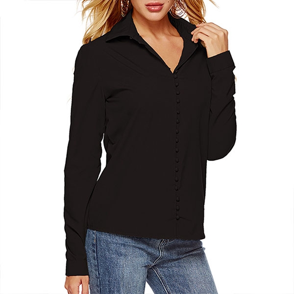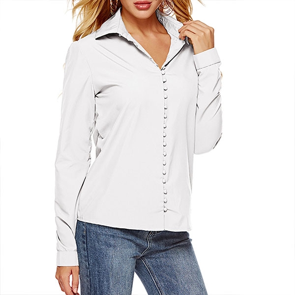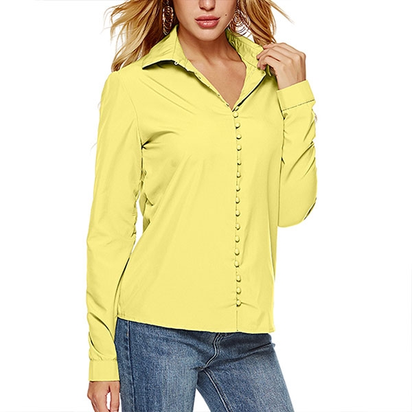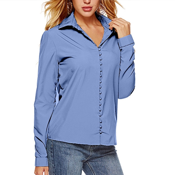 For your workdays,this shirt can be regarded as your perfect partner. Solid color tone,long sleeve and POLO collar design maintain the classic yet stylish design style,while the unique buttons design will make this piece look more attractive. No matter matching with your shorts,skirts or jeans,you can look fashionable enough!