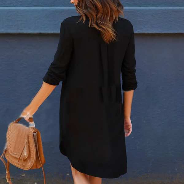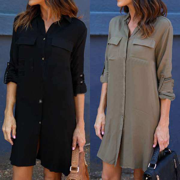 Whether for a coffee dating or night out,you can trust in this chiffon shirt dress to make you look stylish. Solid color style,
