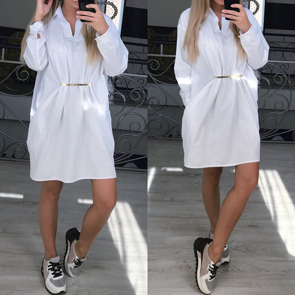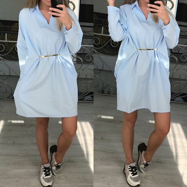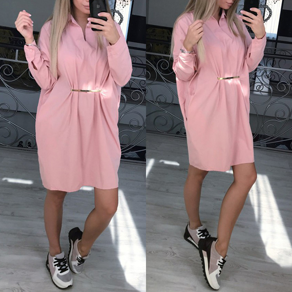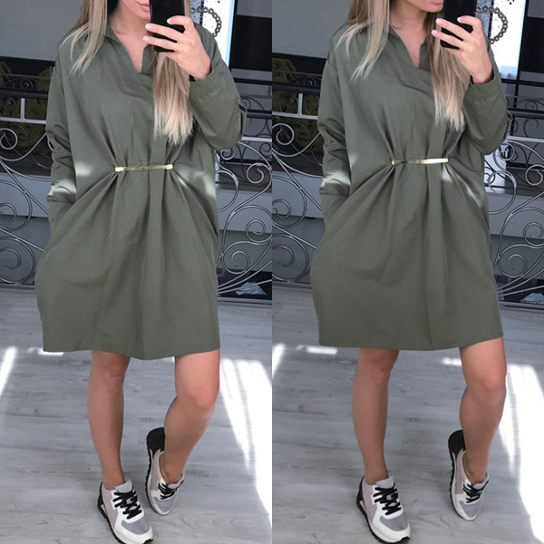 finished with long sleeve,POLO collar and a loose silhouette,this shirt dress can showcase your female appeal.