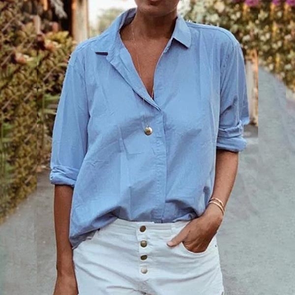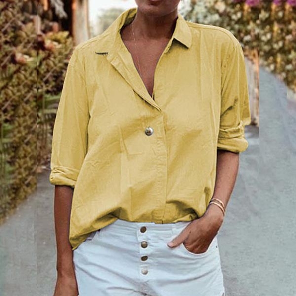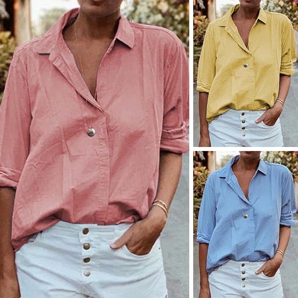 Fashion Solid Color Long Sleeve POLO Collar Shirt