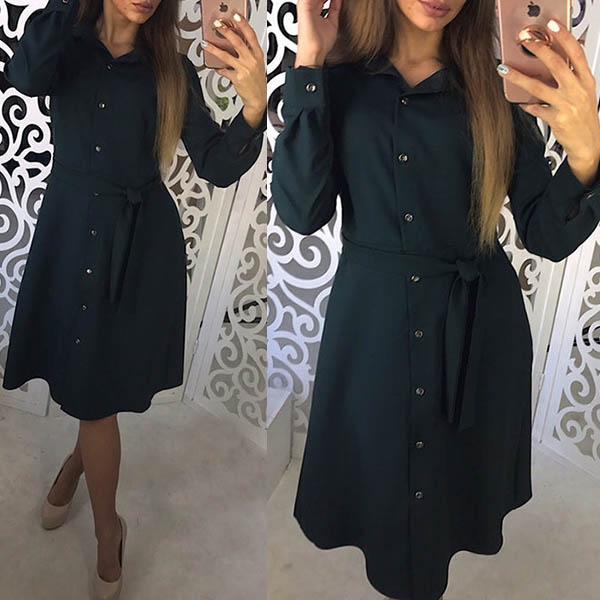 long sleeve,POLO collar and single-breasted design,this dress is sure to give you a cozy yet stylish style.