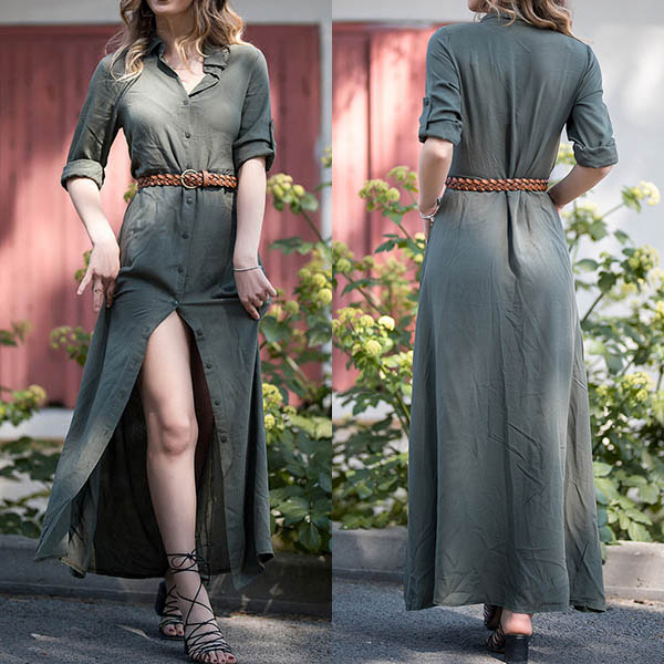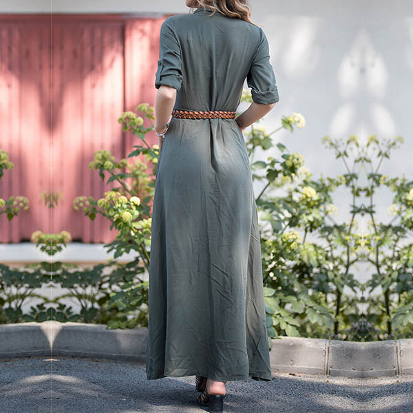 outfitted with long sleeve,POLO collar,single-breasted and a maxi length,this dress perfect fit for your