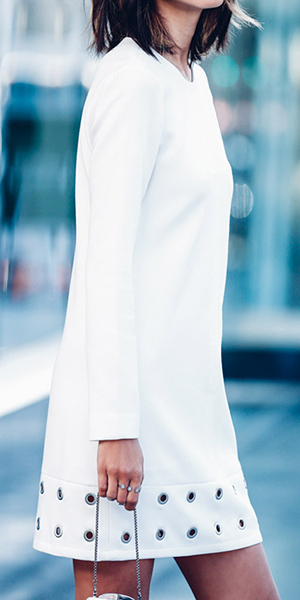 with long sleeve and round neckline,simple but delicate. Its hem with keyholes design makes it look