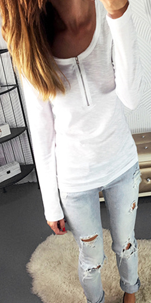 Solid color style,with long sleeve and round neckline design,neckline with zipper design can