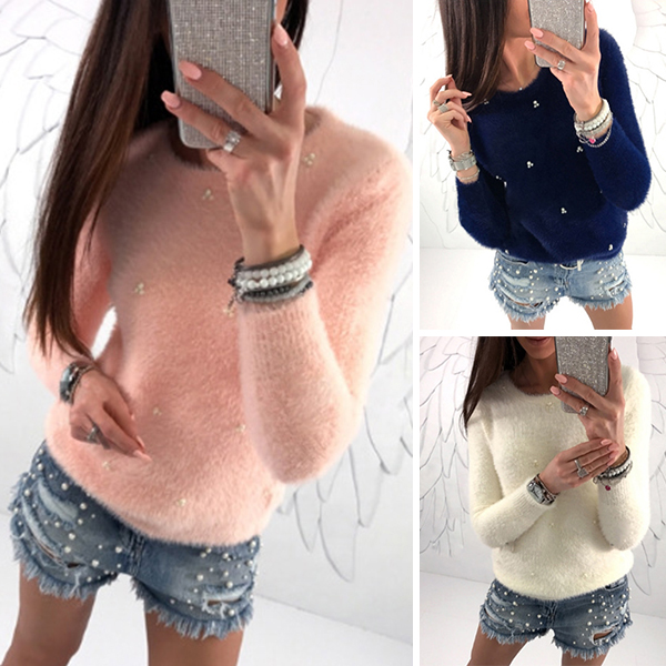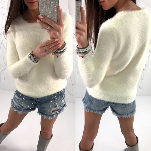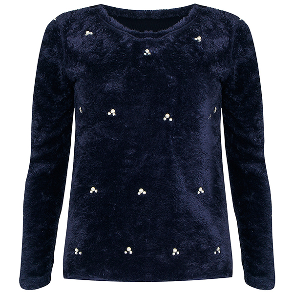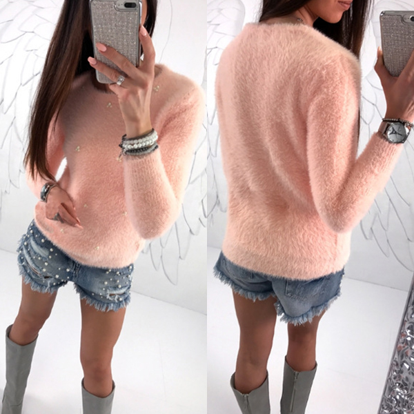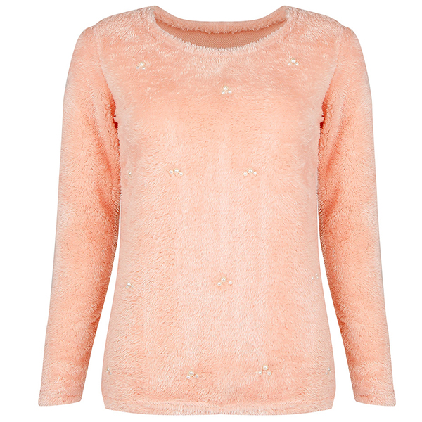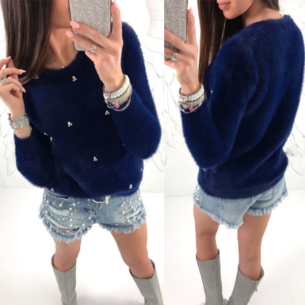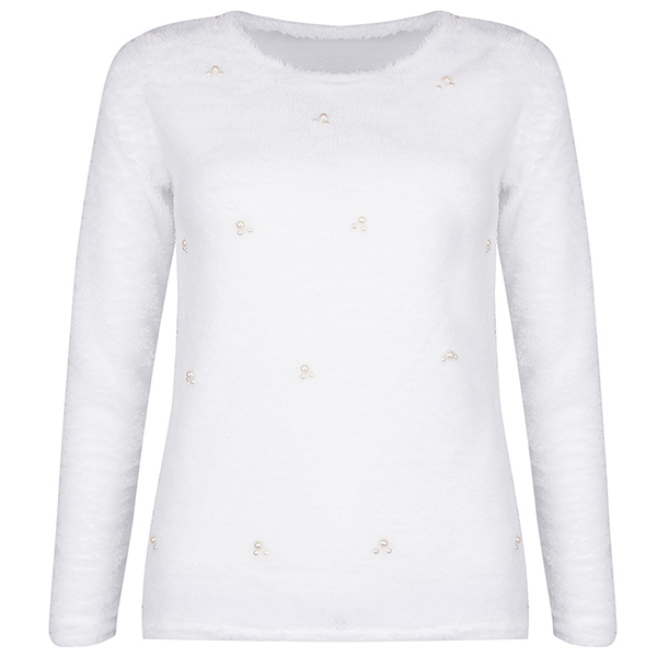 Solid color style,designed with long sleeve and round neck,simple and classic. Decorated with beaded details