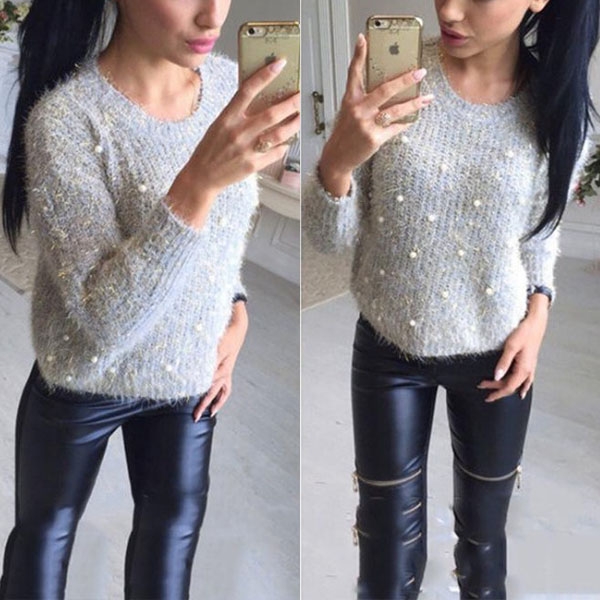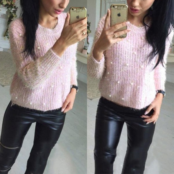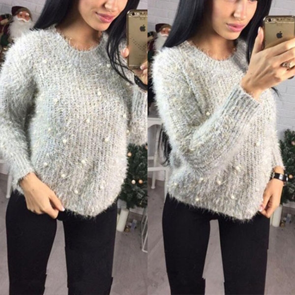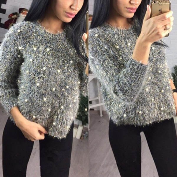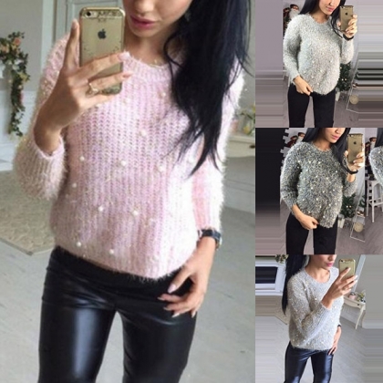 solid color,finished with long sleeve and round neck design,simple yet classic,while the beaded details will