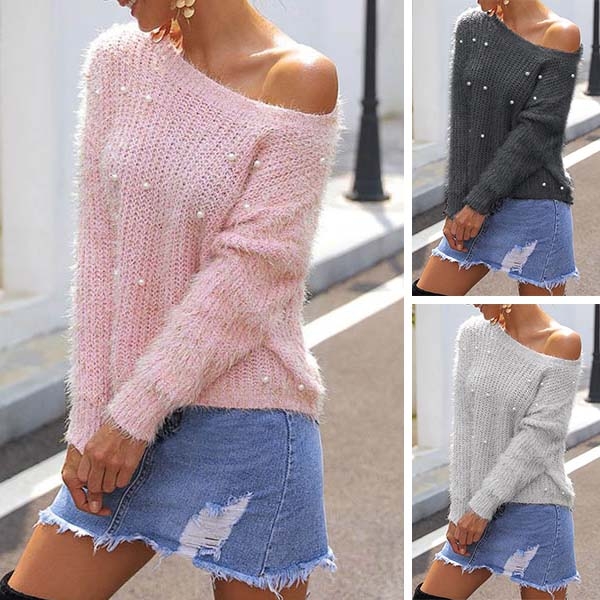 in these cold days. Solid color style,with long sleeve and round neck design,the beaded details